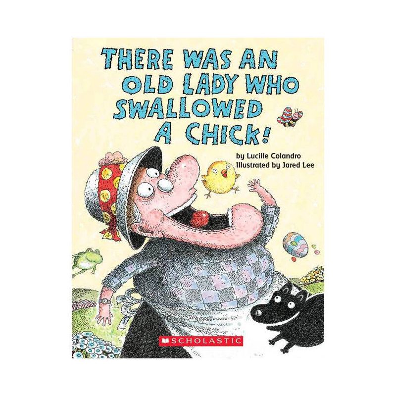 About the Book In this wacky story, the hungry old lady swallows a chick, some straw, an egg, some candy, a basket, and a bow! What (or who) is next? The Easter Bunny? With rhyming text and funny il…