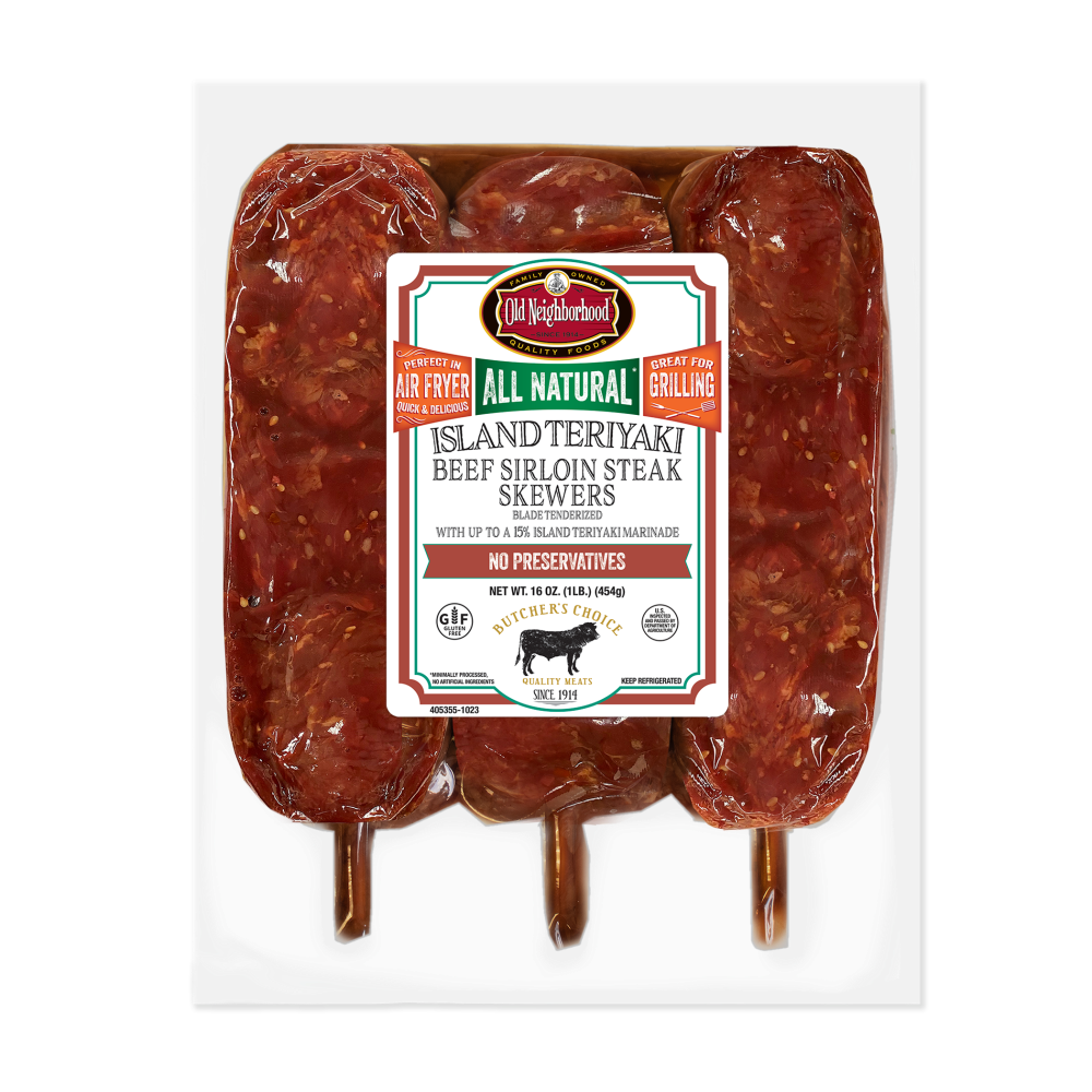Sirloin Beef Skewers are marinated in a island teriyaki sauce with spices.Great for grillingCan be cooked in an air fryer