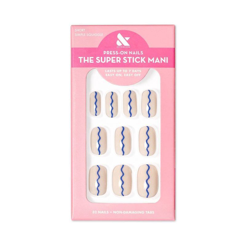 Olive & June Squoval Fake Nails - Simple Squiggle - 32ct