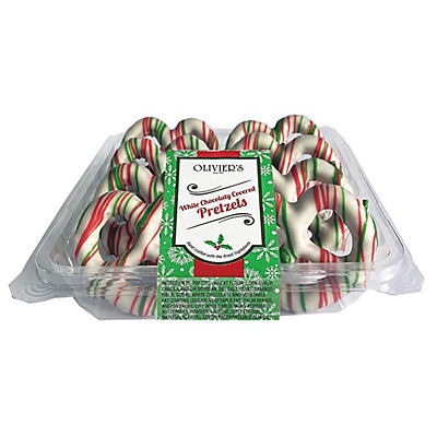 Sweeten the season even more by enjoying some Olivier's Festive Twisted Pretzels. These crunchy salted Dutch pretzels are blanketed in white chocolate and decorated with red and green stripes of icing…