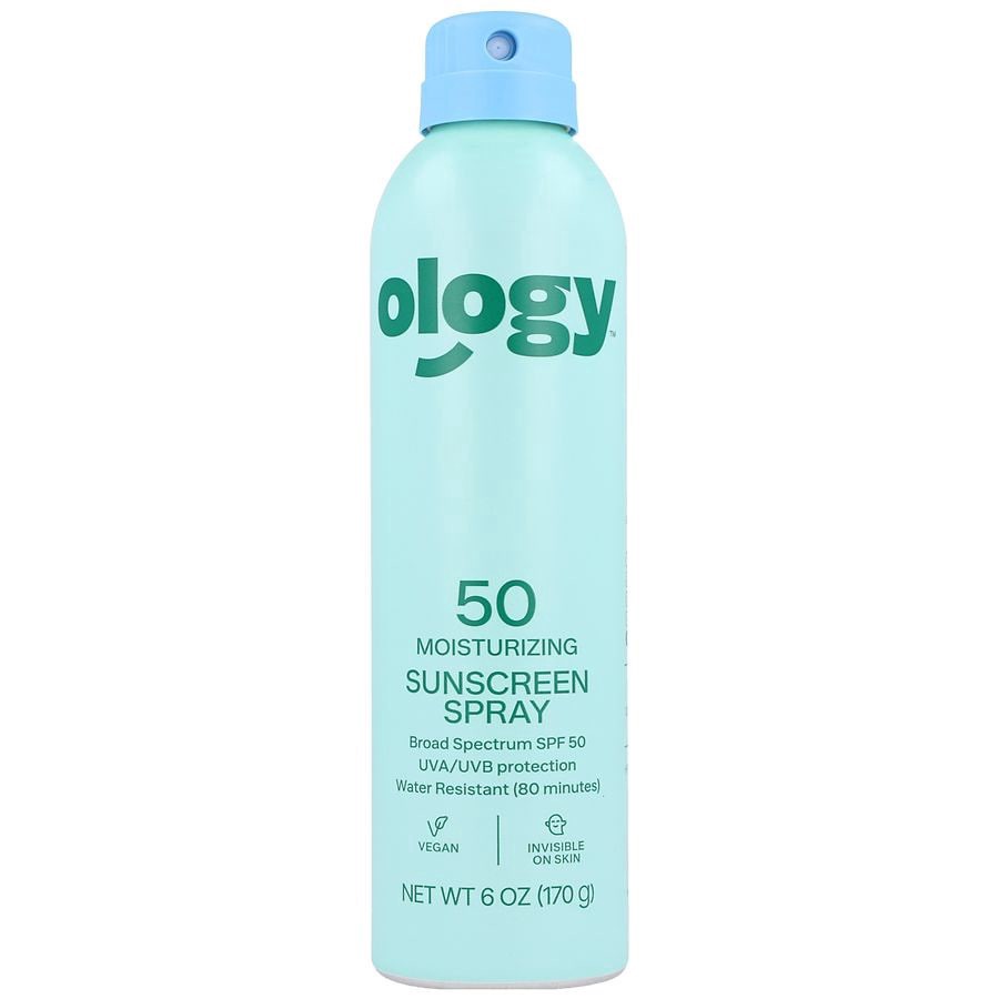 Broad spectrum SPF 50 UVA/UVB protection Water resistant (80 minutes) Ology Moisturizing Sunscreen Spray protects skin from harmful UVA/UVB rays with an easy-to-use, quick-absorbing spray, enriched wi…