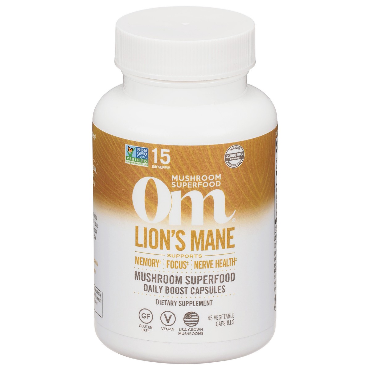 15 daily supply. Supports: Memory; Focus; Nerve health. Daily boost capsules. The smartest mushroom in the kingdom. Lion's mane can help spark cognition, focus and clarity. Om Lion's Mane capsules areā¦