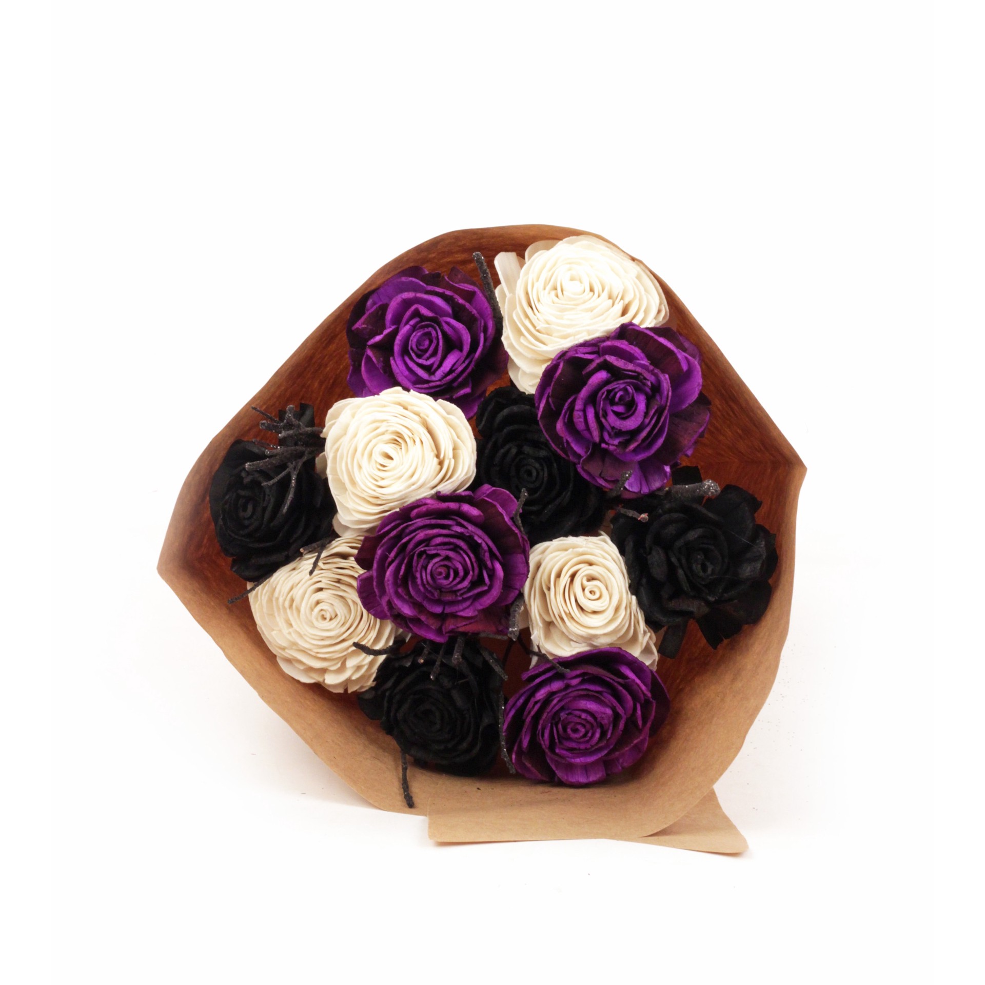 Purple, Black & White Roses.. Great as a gift. Can be used for your next craft project. Care free and maintence free, add the beauty of a bouquet of flowers without the care and watering.