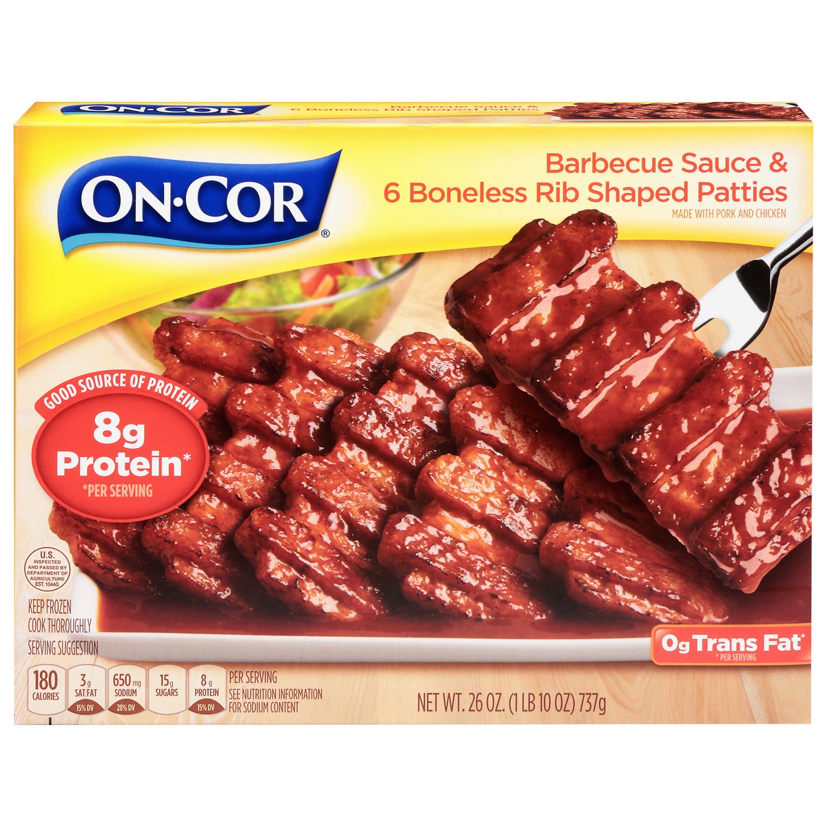 On-Cor Barbecue Sauce & Boneless Rib Shaped Patties 6 Each