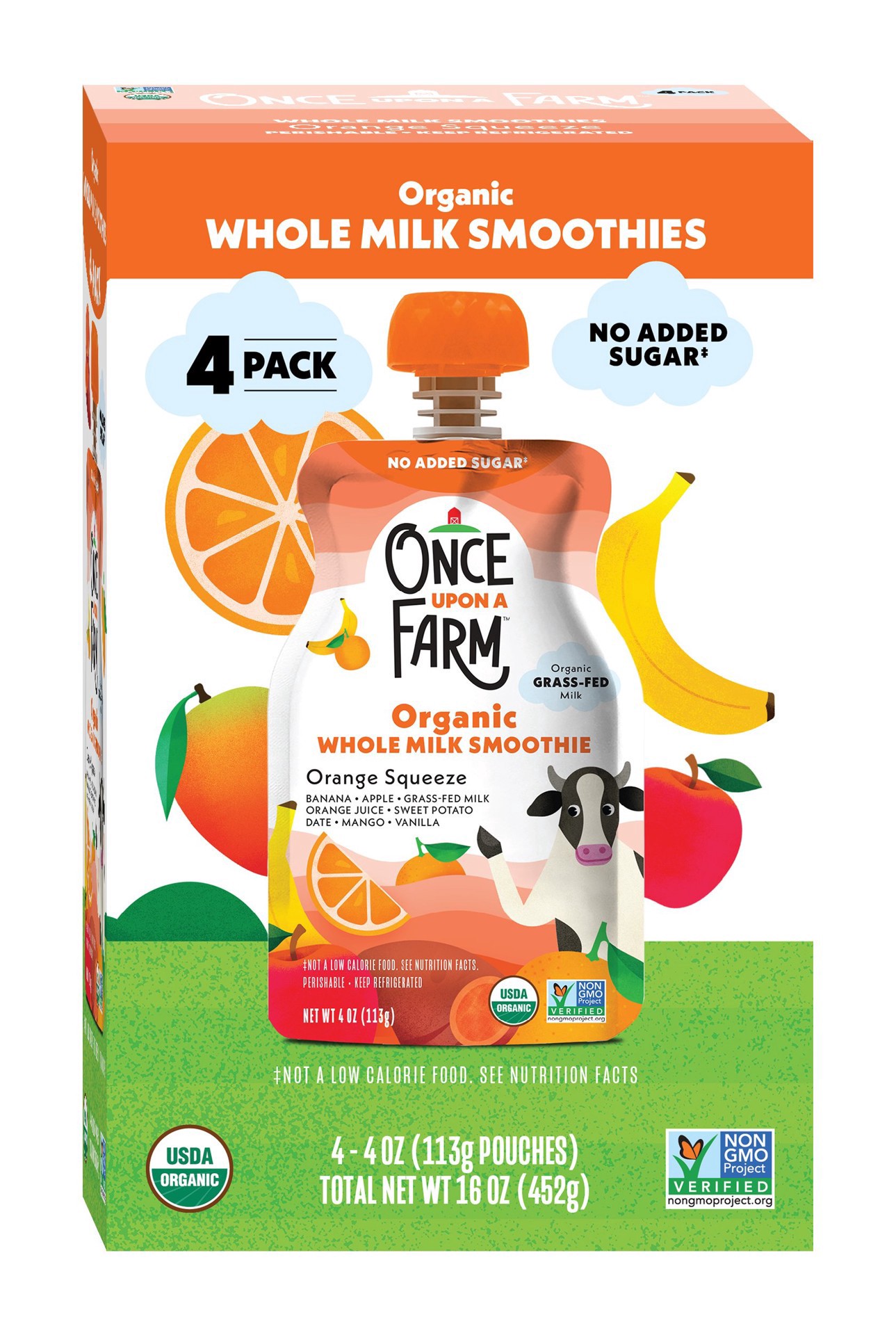 Once Upon A Farm Organic Orange Squeeze Whole Milk Smoothie 4 pk Pouches