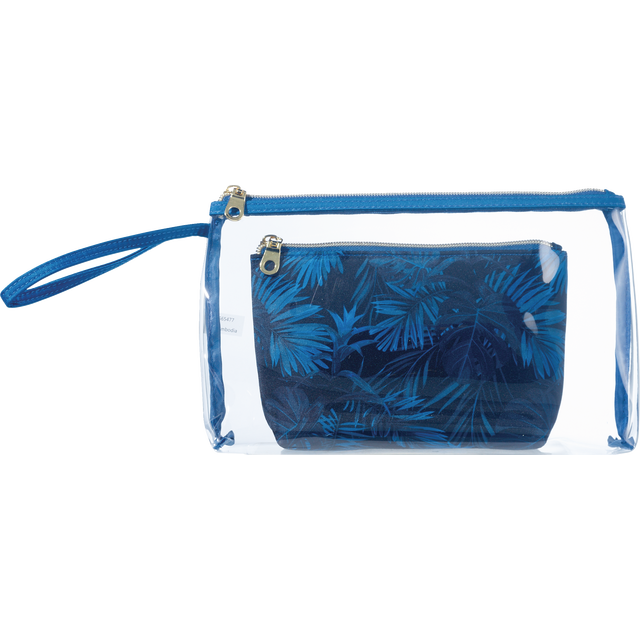 Organize in style with the one+other blue floral and clear PVC 2-piece clutch set. Safely store your beauty essentials in each spacious clutch with elegant gold-tone zipper closures. The clear case g…