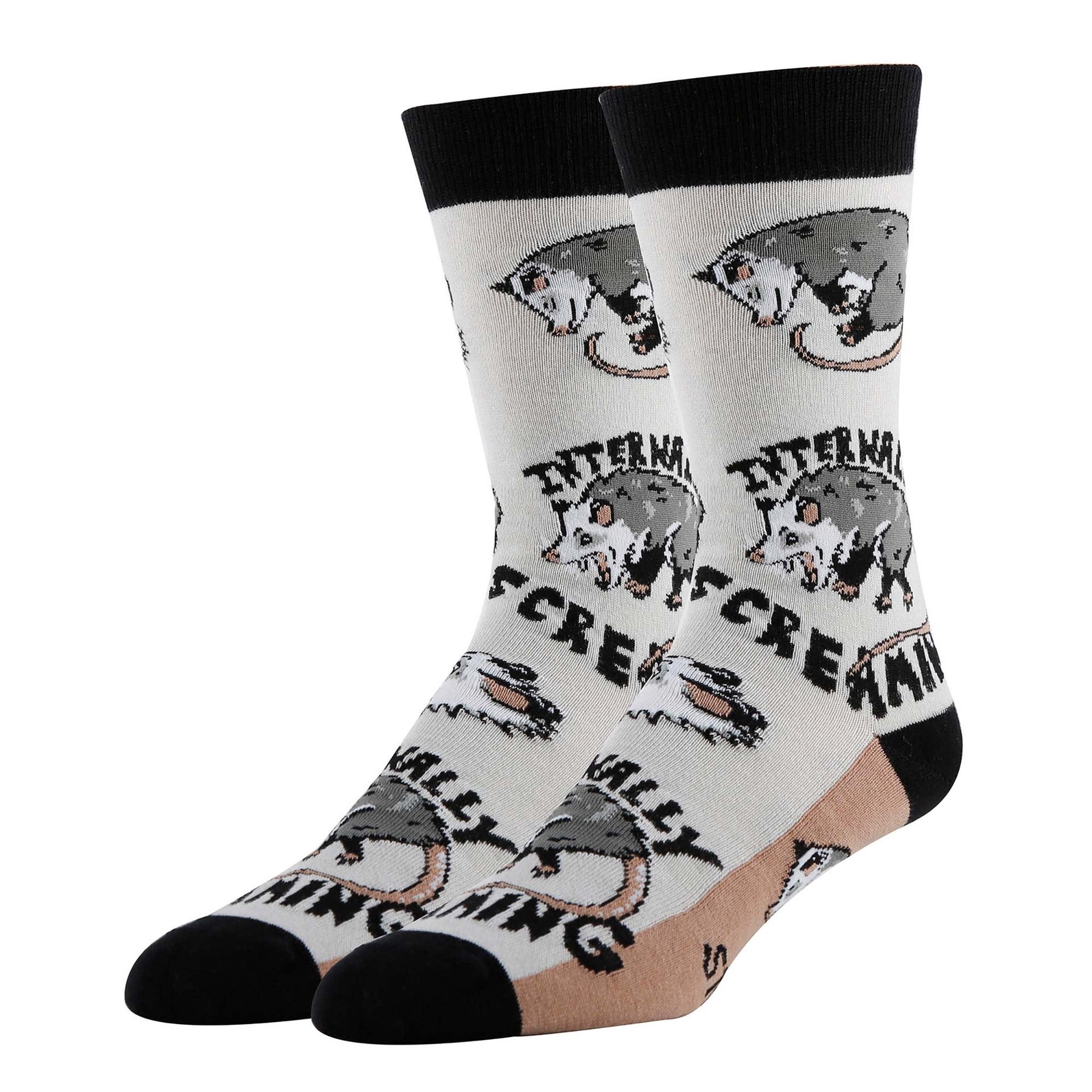 Oooh yeah! Men's Stressed Opossum Funny Crew Socks, Size 8-13