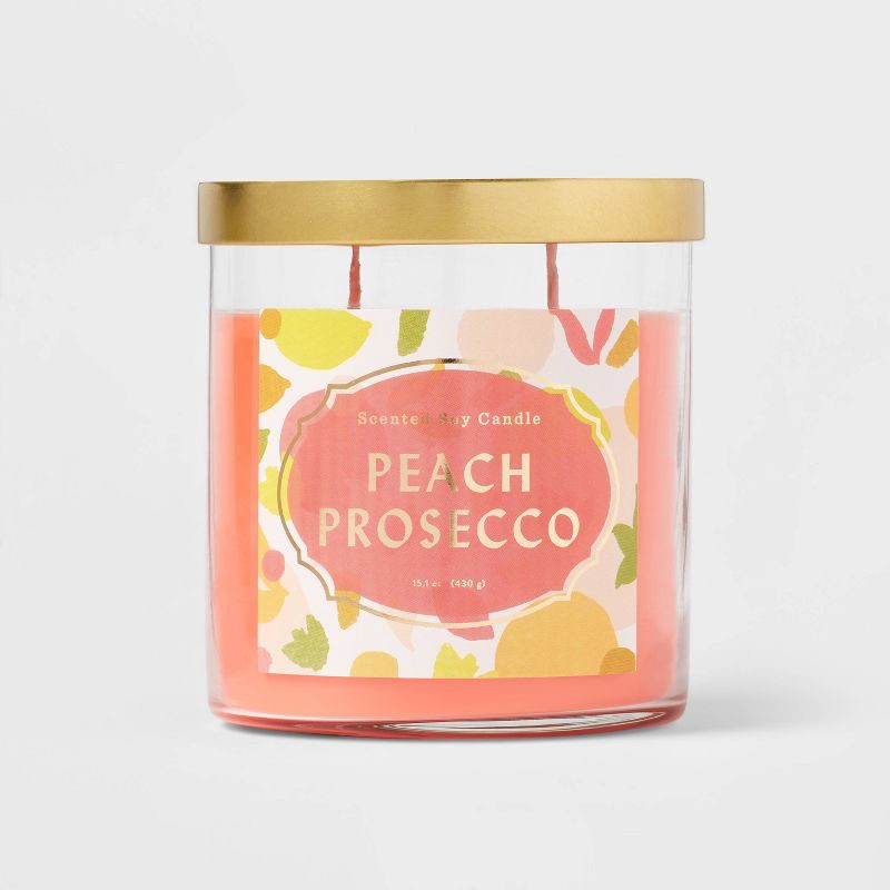 15.1oz Lidded Glass Jar 2-Wick Candle Peach Prosecco - Opalhouse™