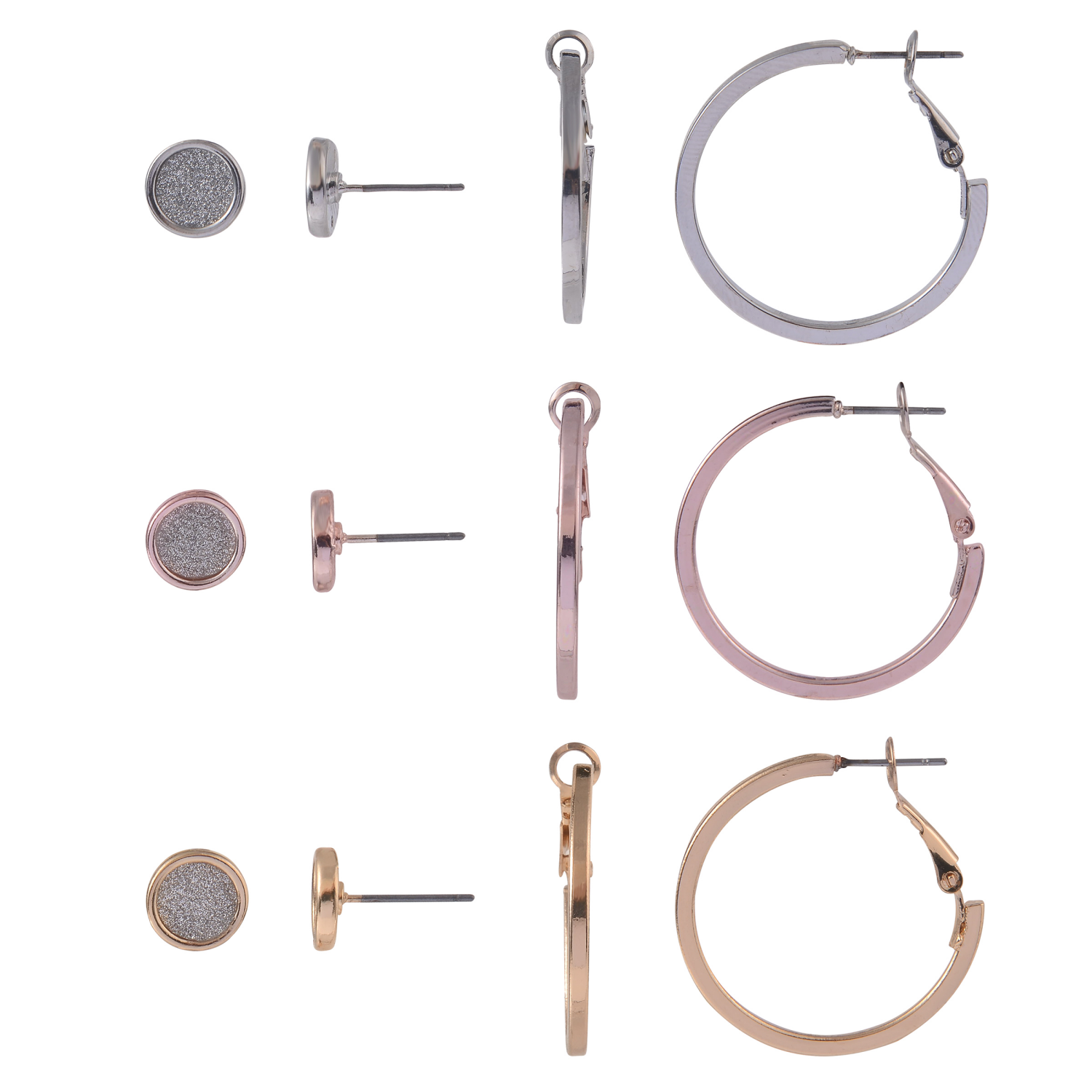 6 Piece Stud Hoop Ear Set Multi