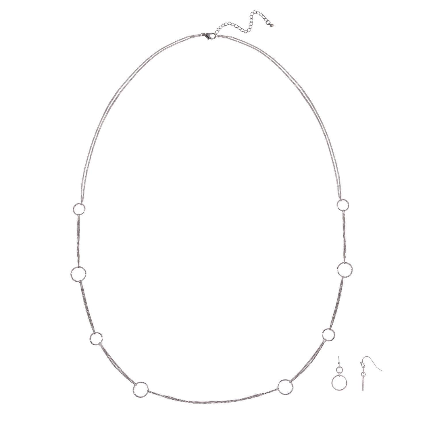 Ring Chain Necklace Ear Set Silver