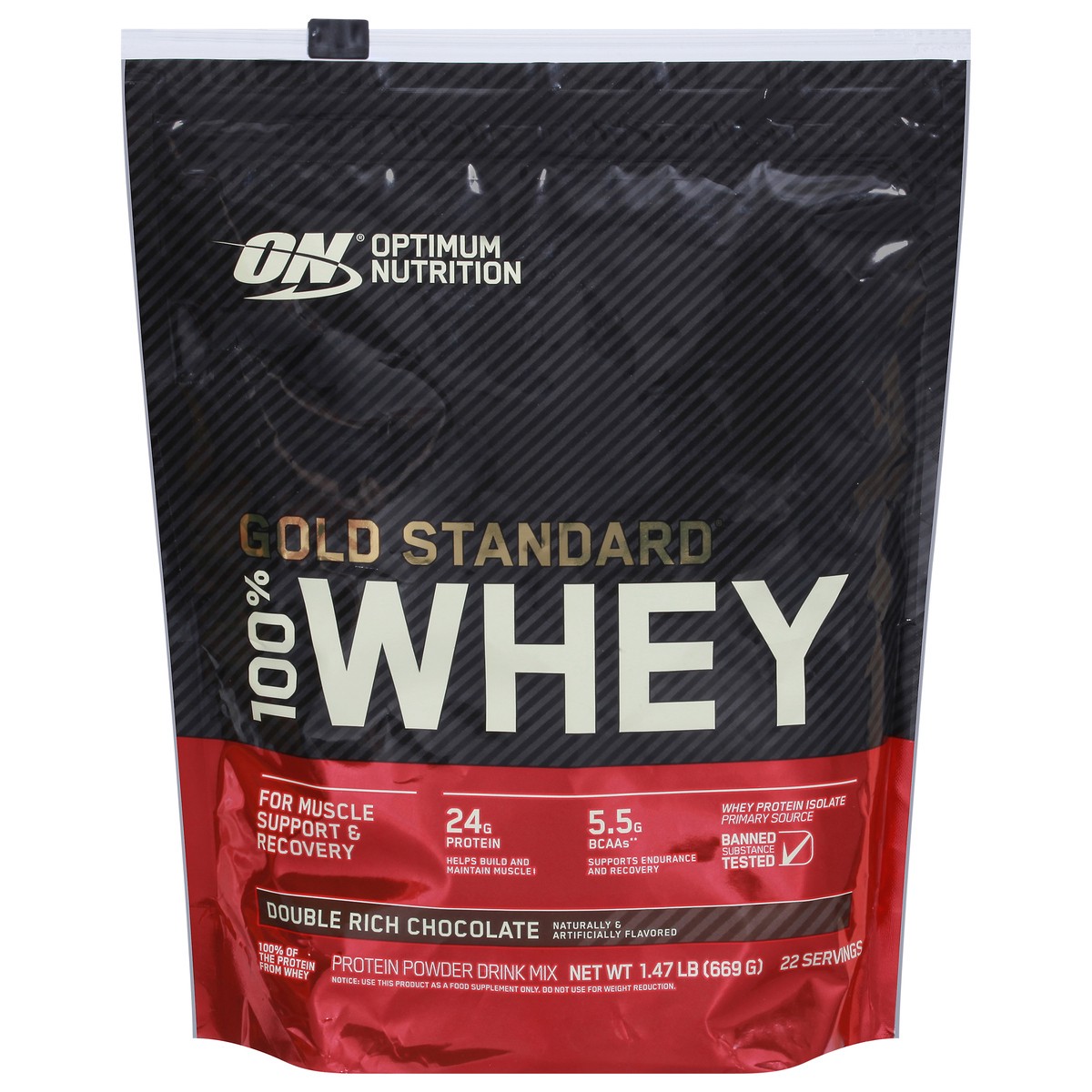 Optimum Nutrition Gold Standard 100% Whey Double Rich Chocolate Protein Powder Drink Mix 1.47 lb