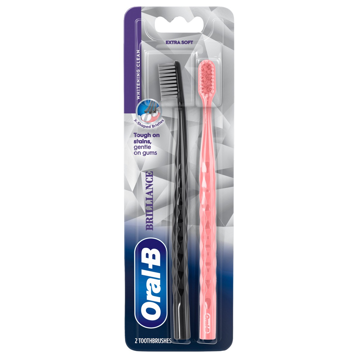 The Oral-B Brilliance 2-pack in colors Black and Teal are ultra soft and beautifully designed with a stylish grip. They feature ultra dense bristles to ensure a soft, gentle clean, while using X-filam…