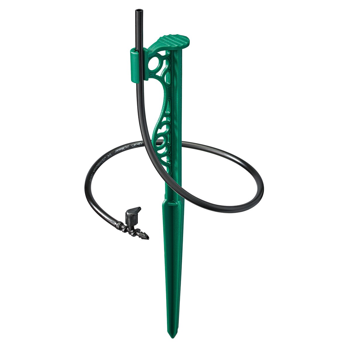 13" green stake, vinyl collar, 27-in of black flexible tubing. Use with 1 micro-sprays that are sold separately to give the spray pattern you need. Works with all 1/4" threaded or barbed micro-spray h…