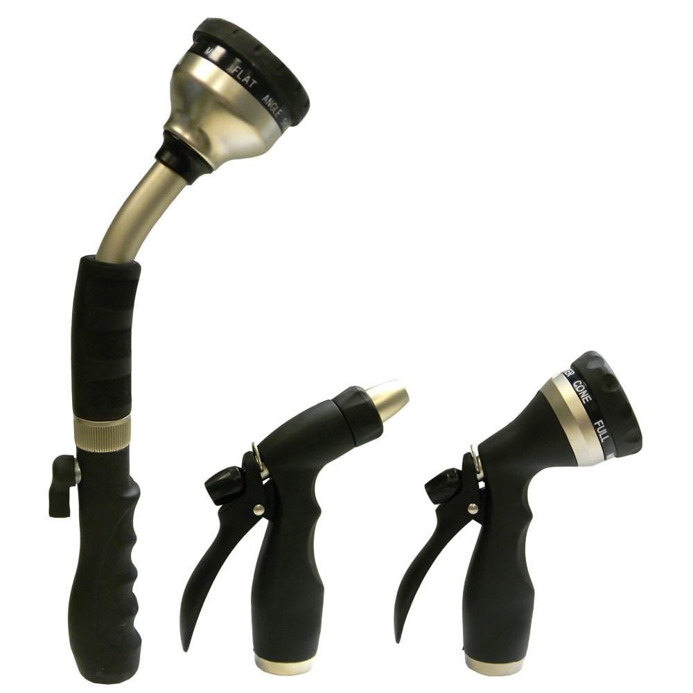Value 3-pack includes a versatile multi-pattern nozzle, an adjustable nozzle for washing and rinsing, and a 14-in multi-pattern wand great for watering hanging baskets and flower beds. Rubber over mol…