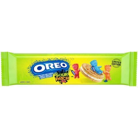 Golden OREOs with a creamy Sour Patch Kid flavored filling