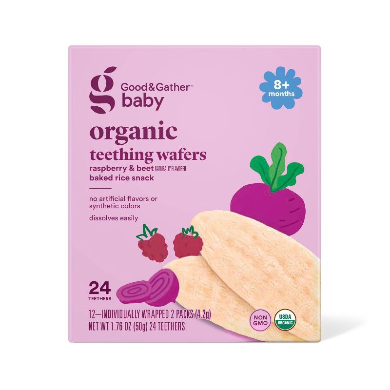 Give your little one a tasty and easy-to-eat snack with the Organic Teething Wafers from Good & Gather™. These organic raspberry and beet baked rice teething wafers have no artificial flavors or synth…