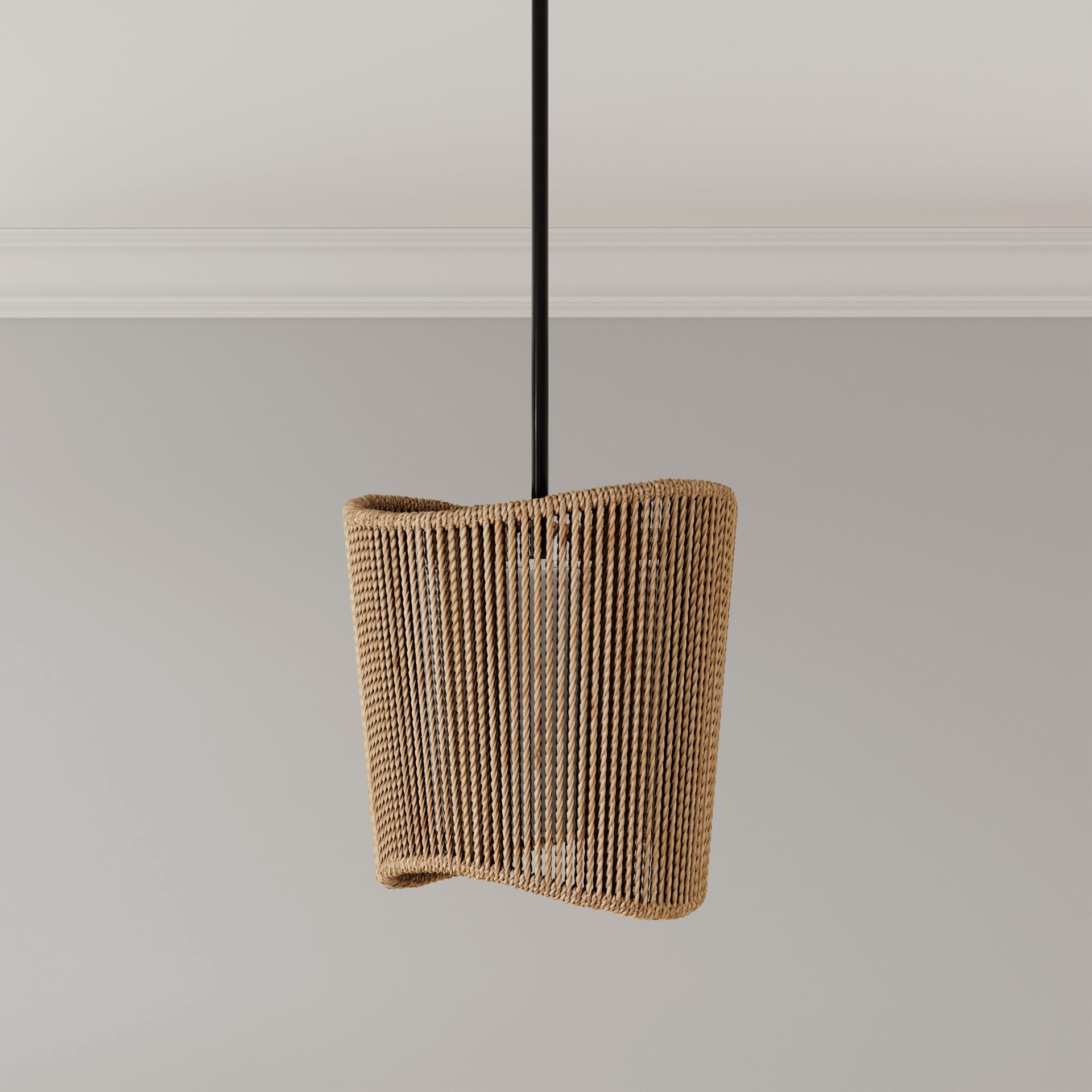 This pendant light in matte black with fabric and rattan shades offers a natural and refined touch to your home. Requires one medium (E-26) base light bulb, maximum wattage of 60 (not included). This …