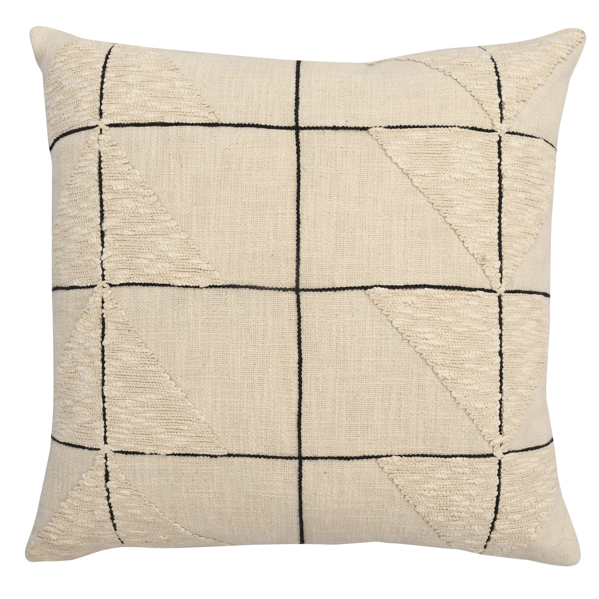 Cover: 100% cotton. Crafted with cotton thread. Hidden zipper. Dimensions 20-in x 20-in. Spot clean only. Filling - down alternative fill. Removable cover.