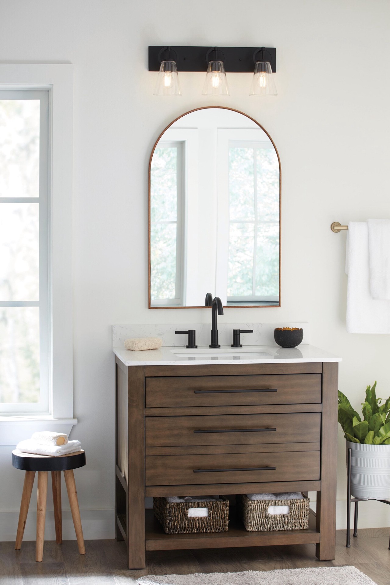 slide 3 of 6, Origin 21 24-in W x 36.0-in H Arch Warm walnut Polished Wall Mirror, 1 ct