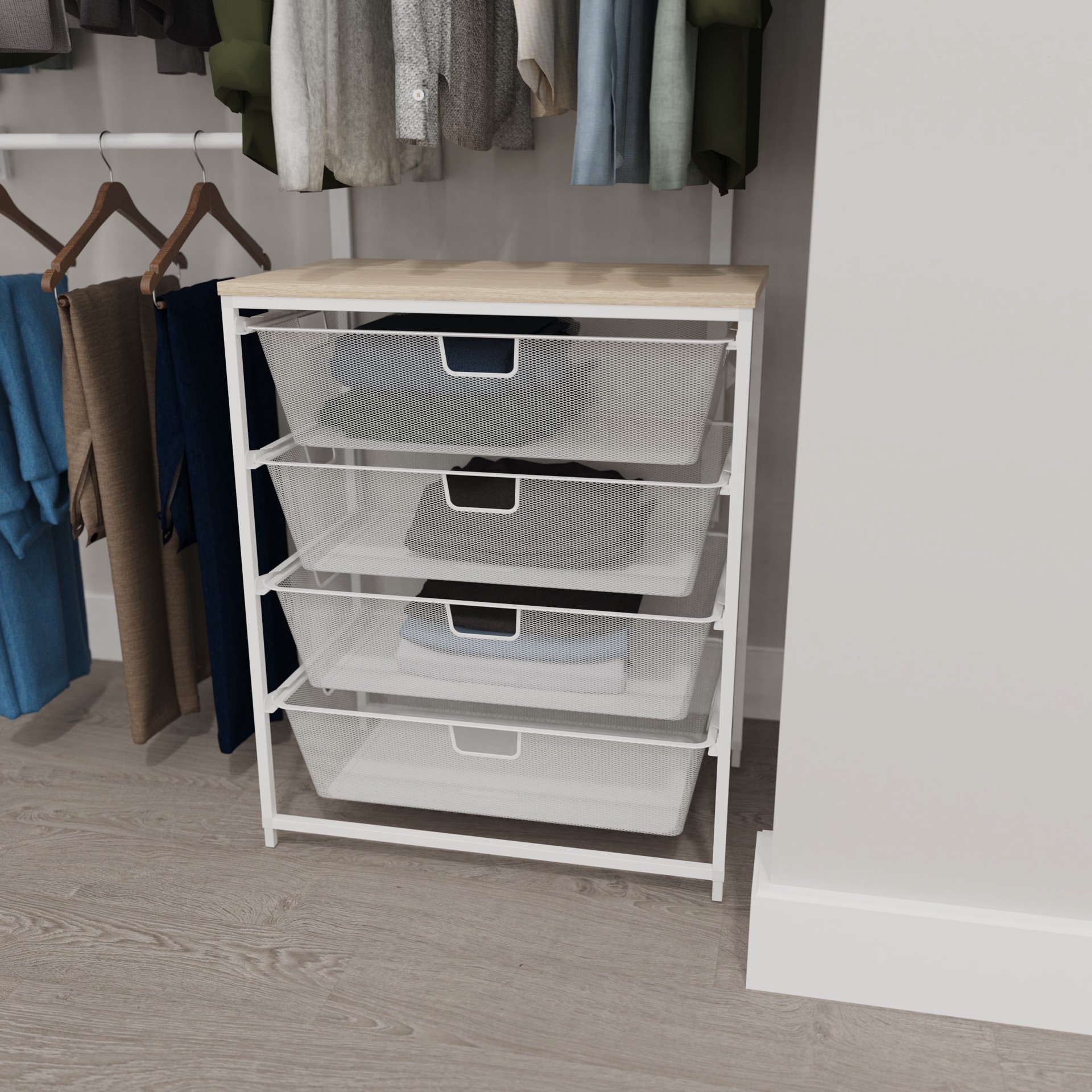 Origin 21 Edda 4-Mesh Drawer Standing Organizer with Wooden Top complements the other Edda Closet Organization Systems. Origin 21 Edda 4 drawer organizer is quick and easy to assemble, will transform …
