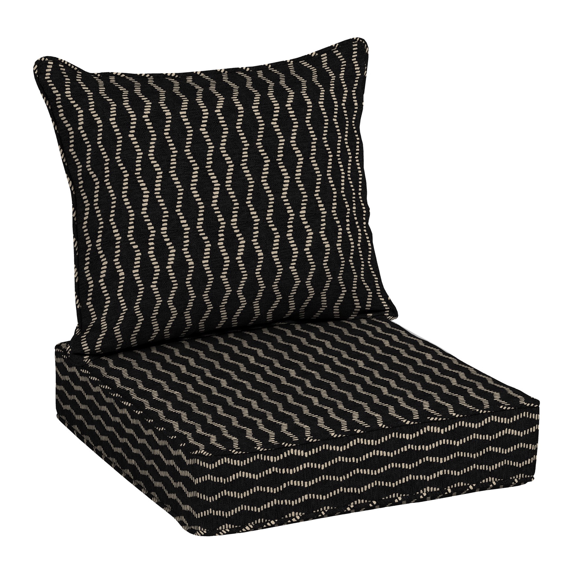 The black helix jacquard polyolefin deep seat patio chair cushion adds a pop of color to your patio space. 60% Polyester, 40% Olefin outdoor fabric with extended fade-resistance. 2-Piece Cushion Set; …