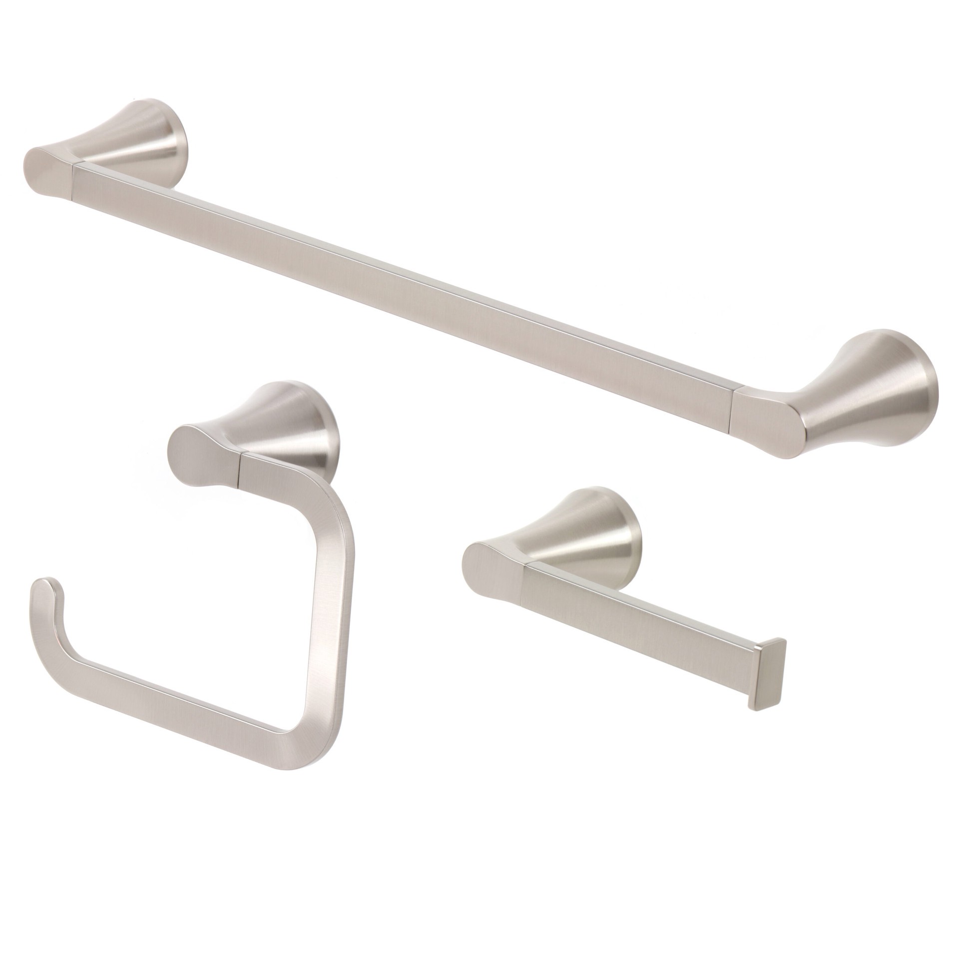 allen + roth 3 -Piece Candace Brushed Nickel Decorative Bathroom Hardware Set Towel Bar, Toilet Paper Holder, Towel Ring Included