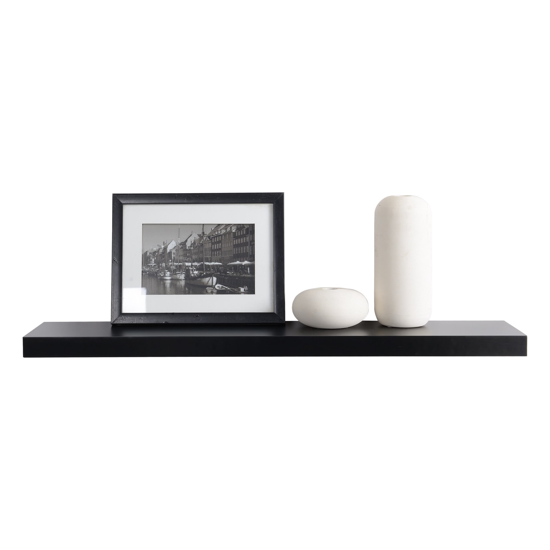 Durable MDF construction that meets CARB standards is complimented with Black durable melamine laminate finish. Installs with a hidden metal bracket allowing greater weight capacity. Easy to install. …