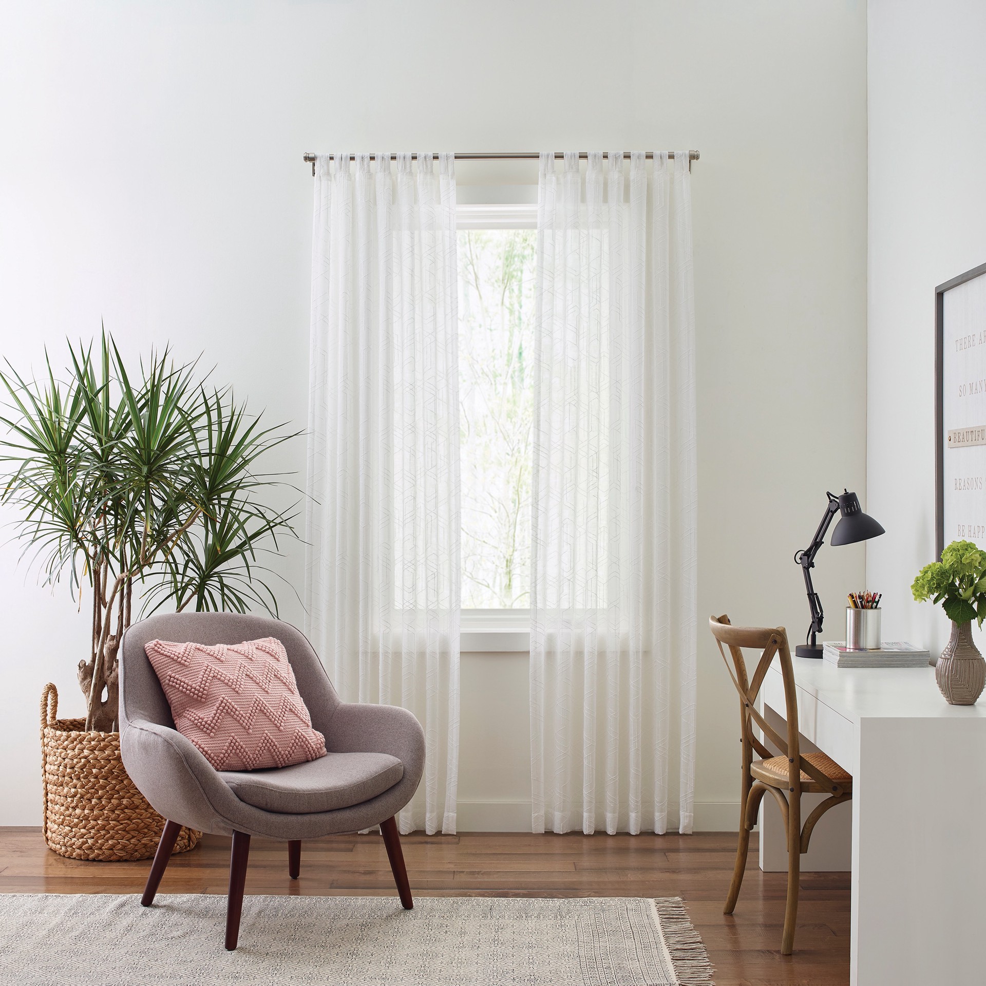 slide 6 of 6, Origin 21 84-in White Geometric Light filtering Top tab Single curtain panel, 1 ct