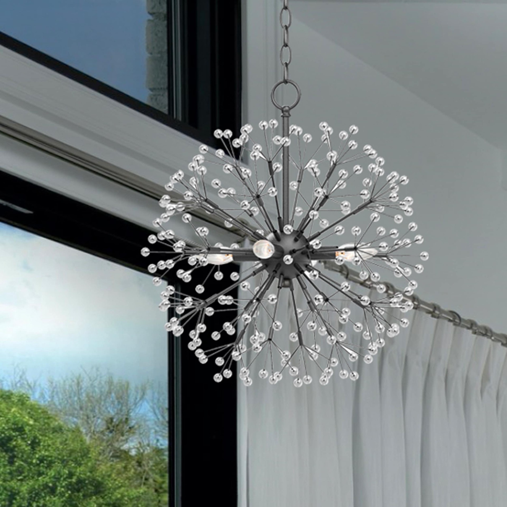 Acrylic beads provides a modern feel. All mounting hardware and detailed instructions are included for an easy installation. Four candelabra base B10 bulbs required (not included). Fixture dimensions:…