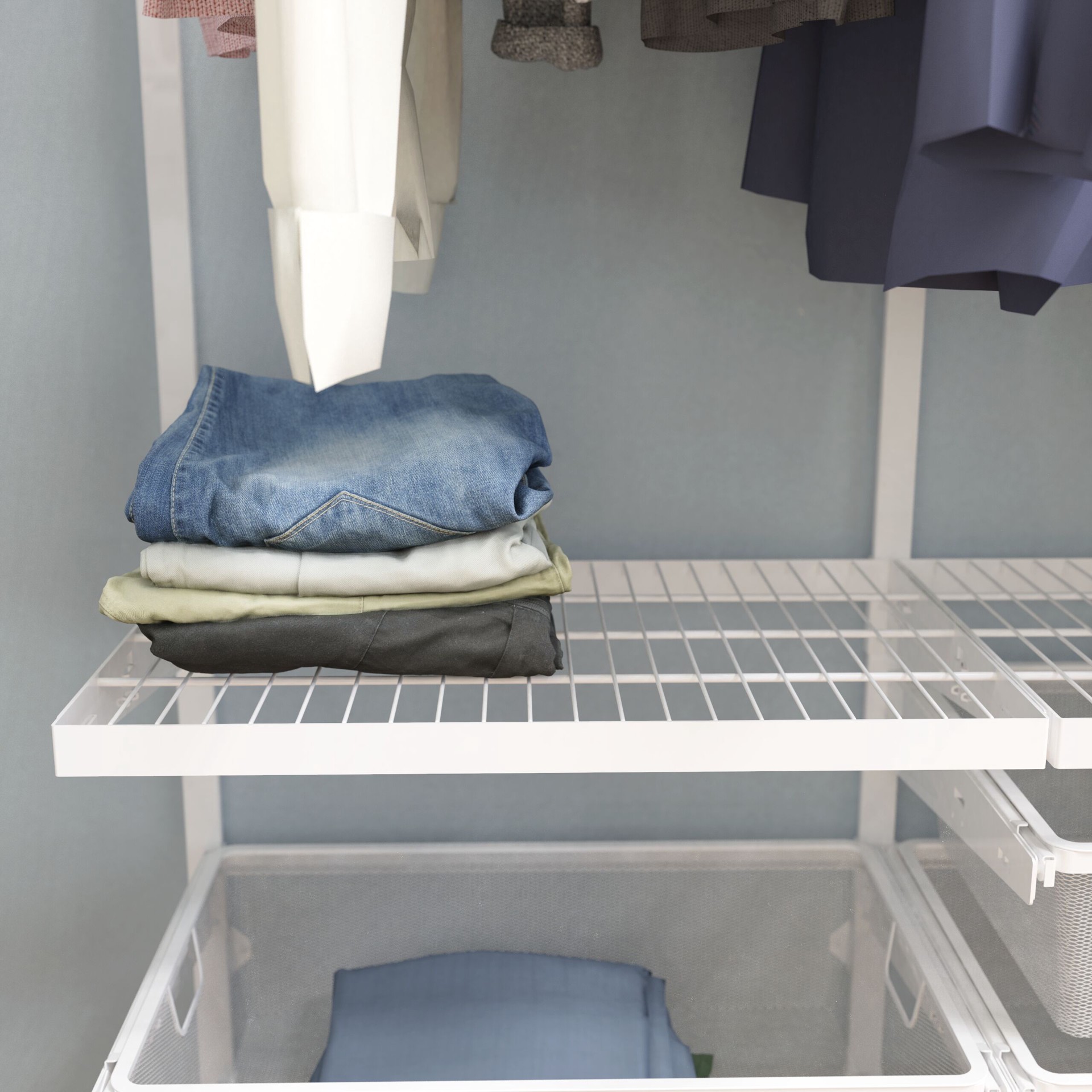 Origin 21 Edda Accessory Kit is compatible with all Origin 21 Edda Closet System Kits. Edda Shelf Kit includes 2 arm brackets and wire shelf. Easy installation onto existing vertical standards (sold s…