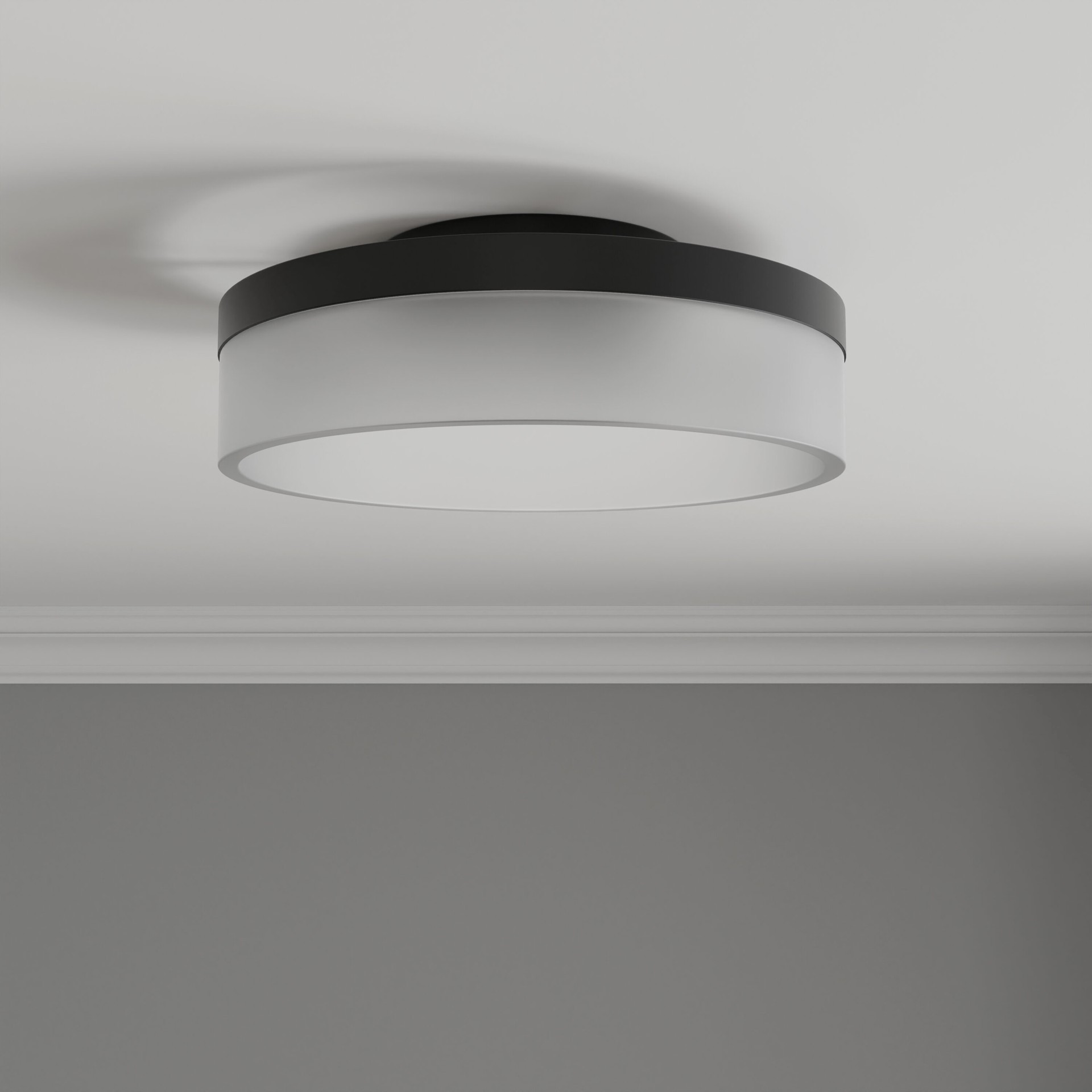 Black finish flush mount ceiling light from the Lynnpark collection offers a modern, refined look. Frosted acrylic shade emits a cool glow. 20 watt integrated LED provides 1200 lumen, 90 CRI and 2700 …