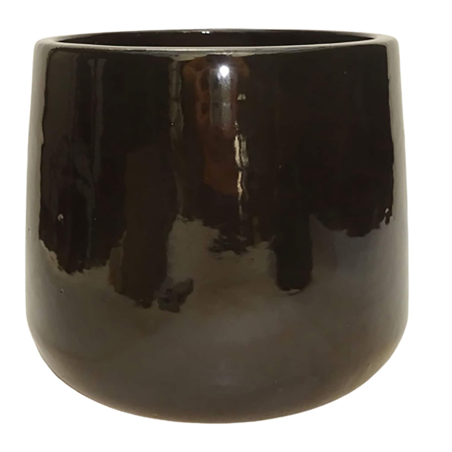 Origin 21 Round 8.7-in W x 8.7-in L Black Ceramic Indoor/Outdoor Planter