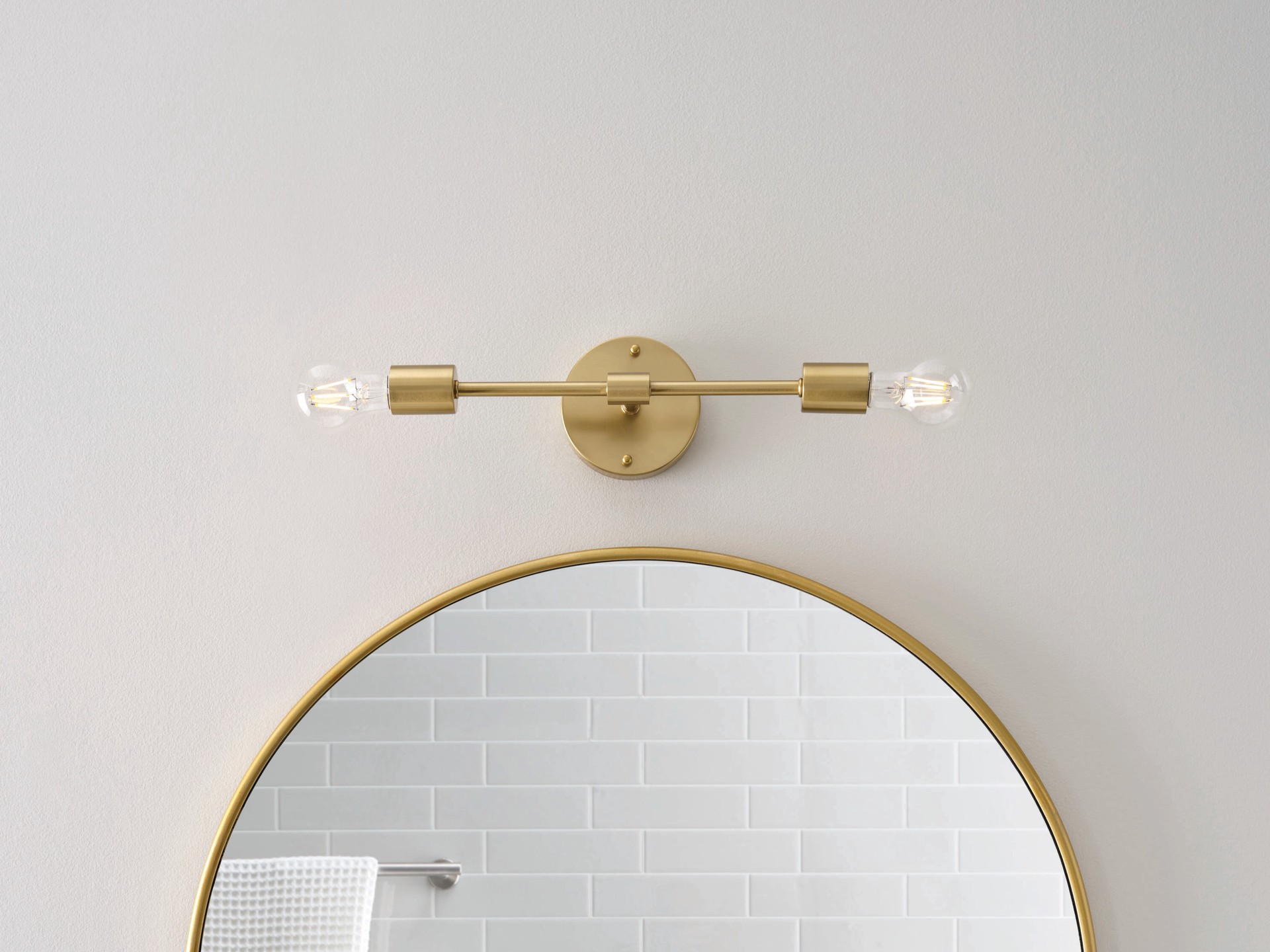 Fixture dimensions: 4.5-in W x 4.75-in D x 14.75-in H. Brushed gold finish. No shade for this wall sconce. Workable for dimming circuits when using appropriate light bulbs with dimmable function.. Dam…