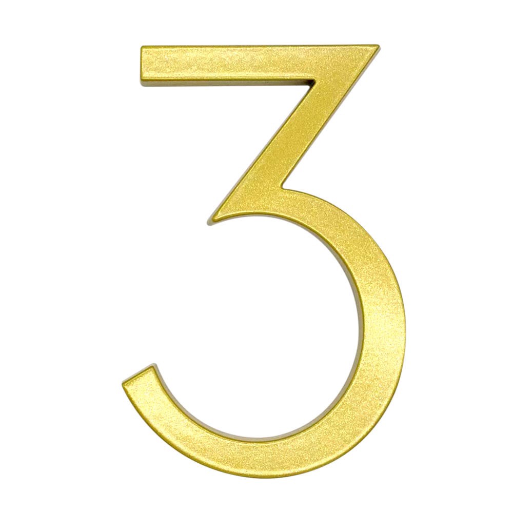 This 5-inch Urbana Park address number collection features a weather-resistant, soft gold powder coat finish. It can be mounted on a surface in two optional ways: floating mount or flush mount. Constr…