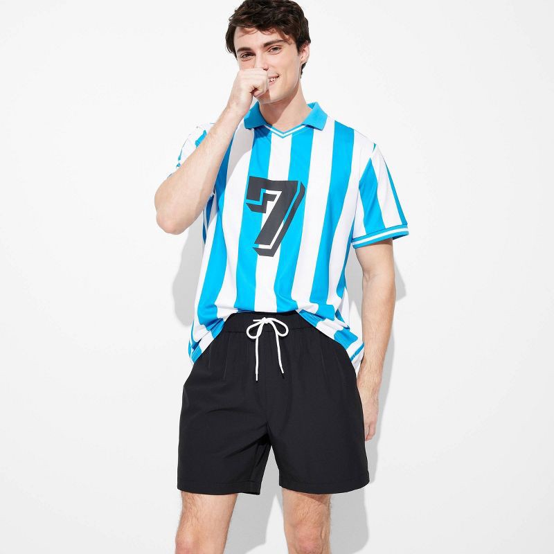 Woven pull-on shorts with a regular fit and six-inch inseam length. Made from midweight recycled polyester-spandex blend fabric and 100% recycled polyester lining for comfortable wear. Sport a mid-ris…