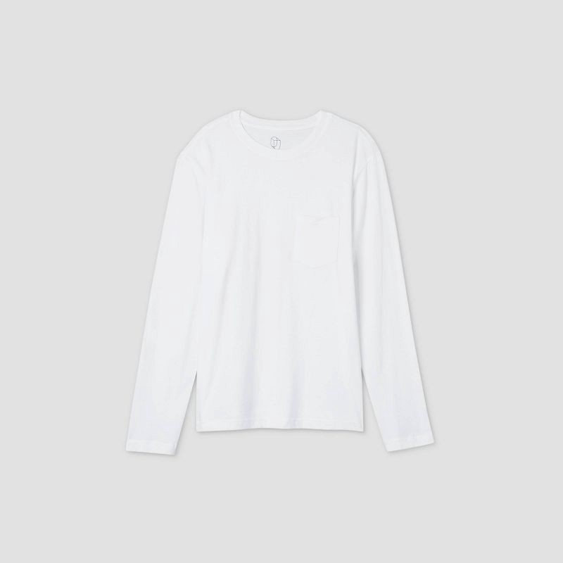 Solid-color T-shirt with a crew neckline, long sleeves and a patch pocket at the chest. Boasts year-round fabric construction with 100% cotton. Standard fit and at-hip length round out the pullover de…