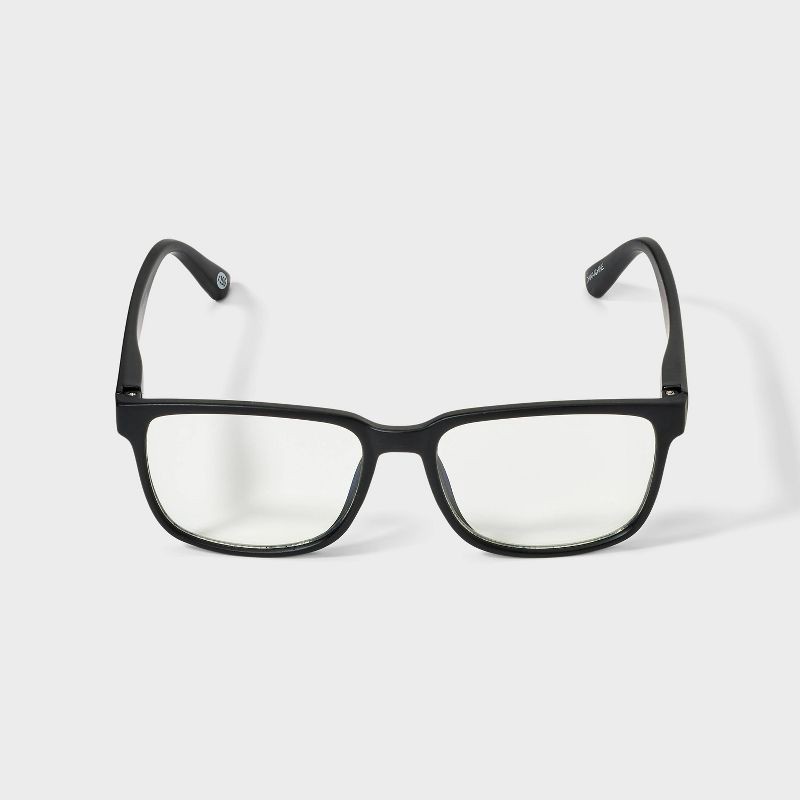 Square blue-light-filtering glasses. Feature blue-light filtering clear lenses to help ease eye strain and provide UV protection against harmful sun rays. Full-rim design in a matte brown plastic fram…