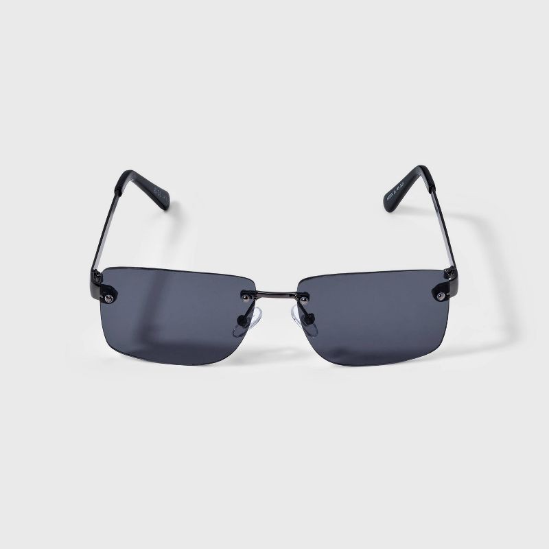 Satin gunmetal rectangle sunglasses with a black frame. Showcase gray lenses offering UV protection to keep eyes shielded from harmful sun rays, and designed with scratch-resistant properties for worr…