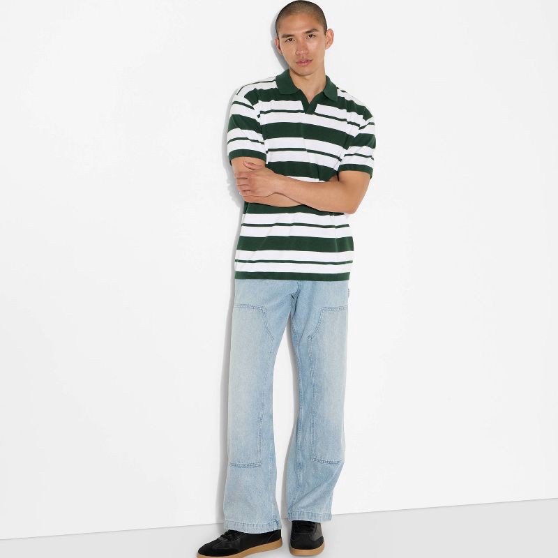 Johnny-collar sweater tailored in a casual-fit silhouette with a below-waist length and short sleeves. Made of midweight cotton-recycled cotton blend fabric for breathable all-day comfort. Collared ne…