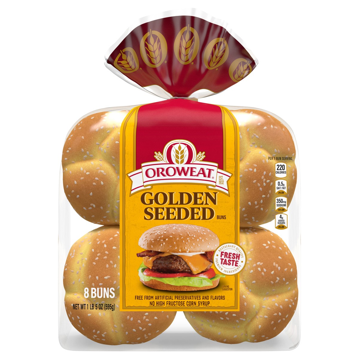 Oroweat Golden Seeded Sandwich Buns are the perfect complement to any burger or sandwich. Our bakers make a rich golden dough that bakes up big and fluffy, then top each bun with crunchy sesame seeds.…