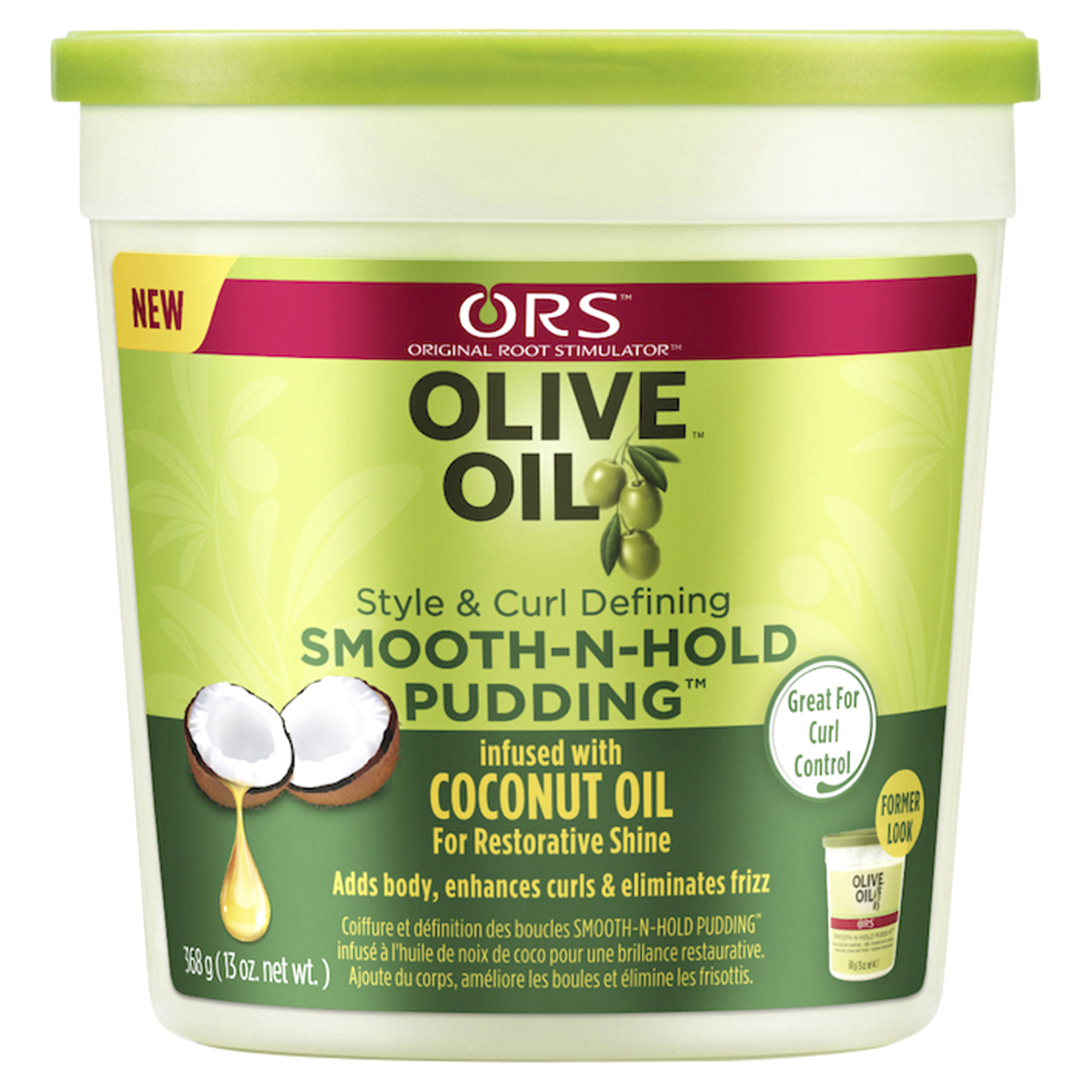 New. Original Root Stimulator. Infused with coconut oil for restorative shine. Adds body, enhances curls & eliminates frizz. Former look. ORS Olive Oil Smooth-N-Hold Pudding combined with olive oil an…