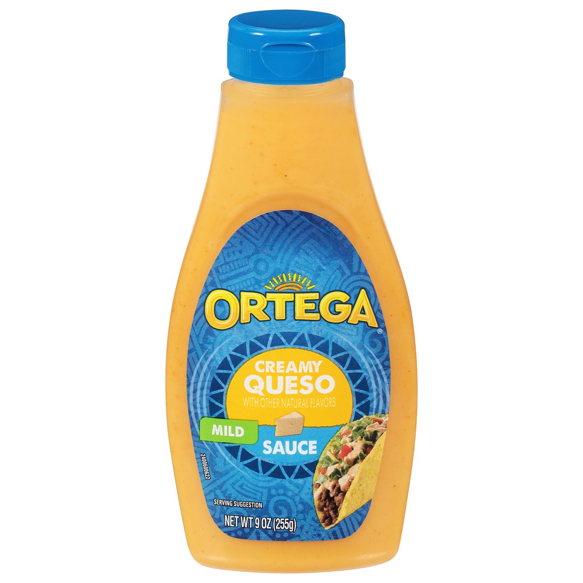 Ortega Creamy Queso Sauce nine ounce is a delicious\, creamy\, mild\, and smooth blended cheesy sauce that is sure to delight. Open the flip cap on the convenient plastic bottle and squeeze your Orteg…