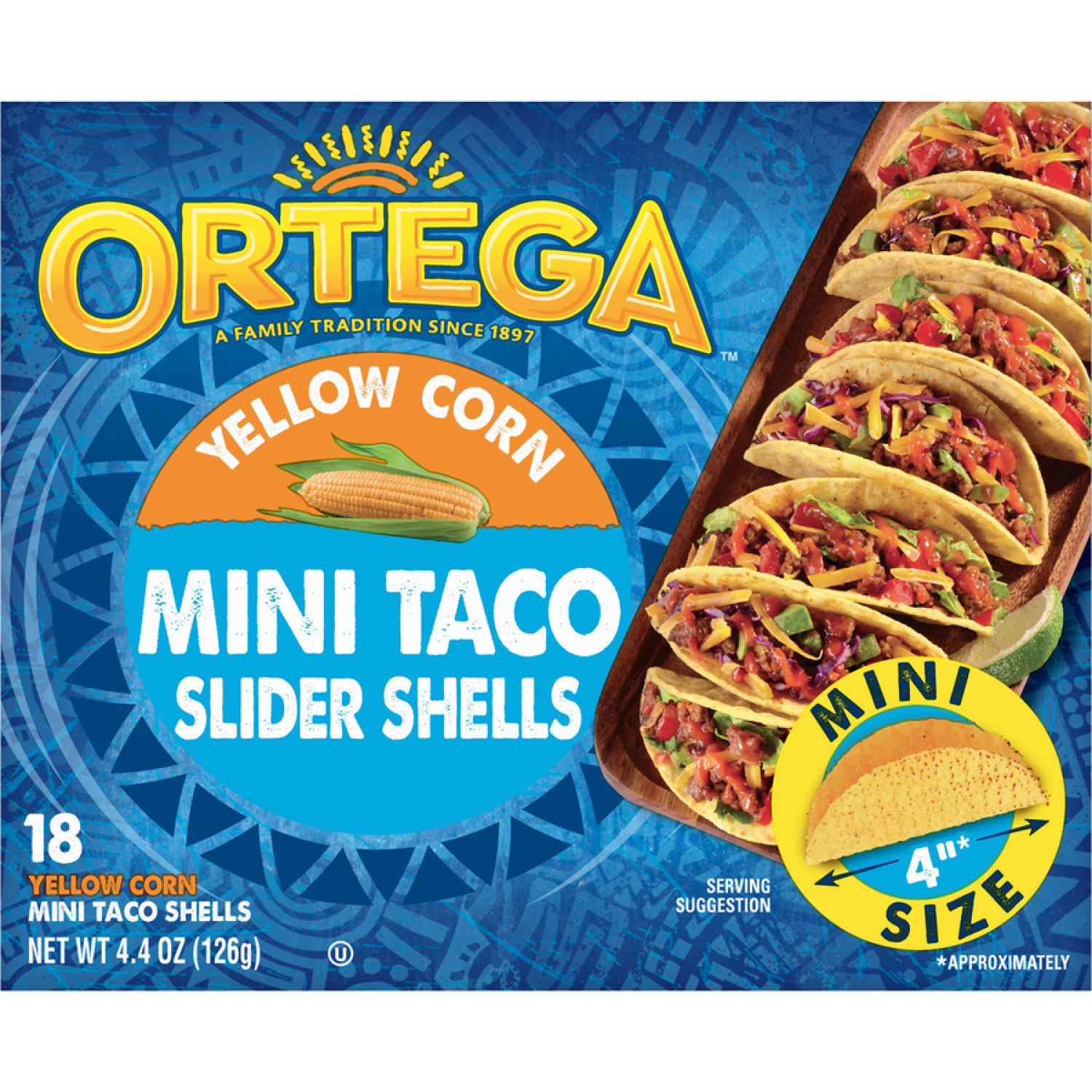 Ortega Mini Yellow Corn Taco Shells, Kosher, 18 Count, 4.4 oz