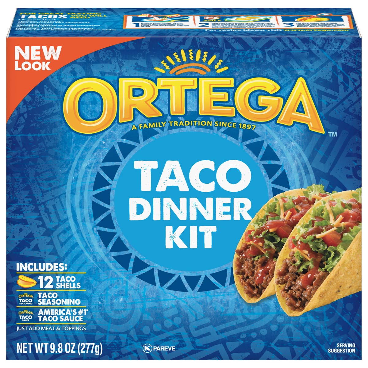 Includes: 12 Taco Shells. Ortega Taco Seasoning. Ortega Taco sauce - America\s No.1 (Based on Nielsen Scan Data) Taco Sauce. New look. A family tradition since 1897. Just add meat & toppings.