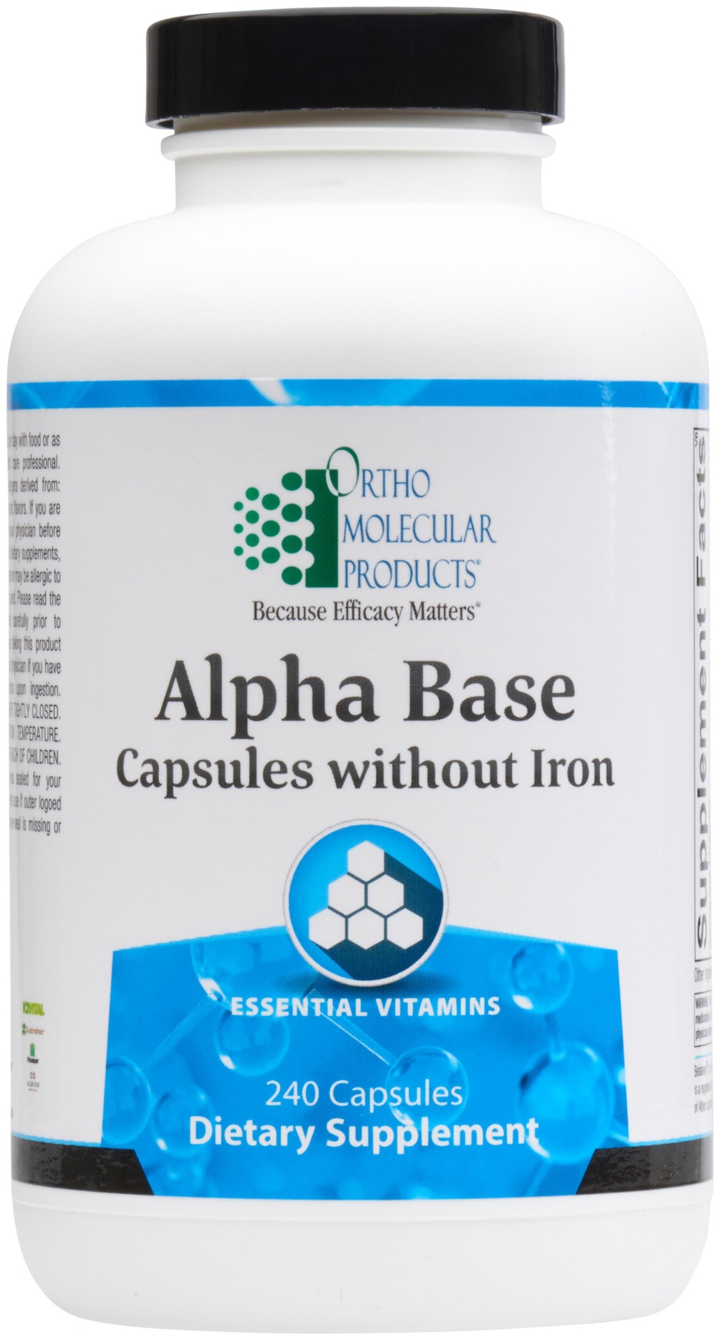 slide 1 of 1, Ortho Molecular Products Alpha Base Without Iron, 240 ct