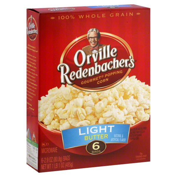 Natural & artificial flavor. Microwave. 0 g trans fat per serving. 50% less fat and 25% fewer calories than regular butter microwave popping corn. 100% whole grain. Orville Redenbacher's - the only go…