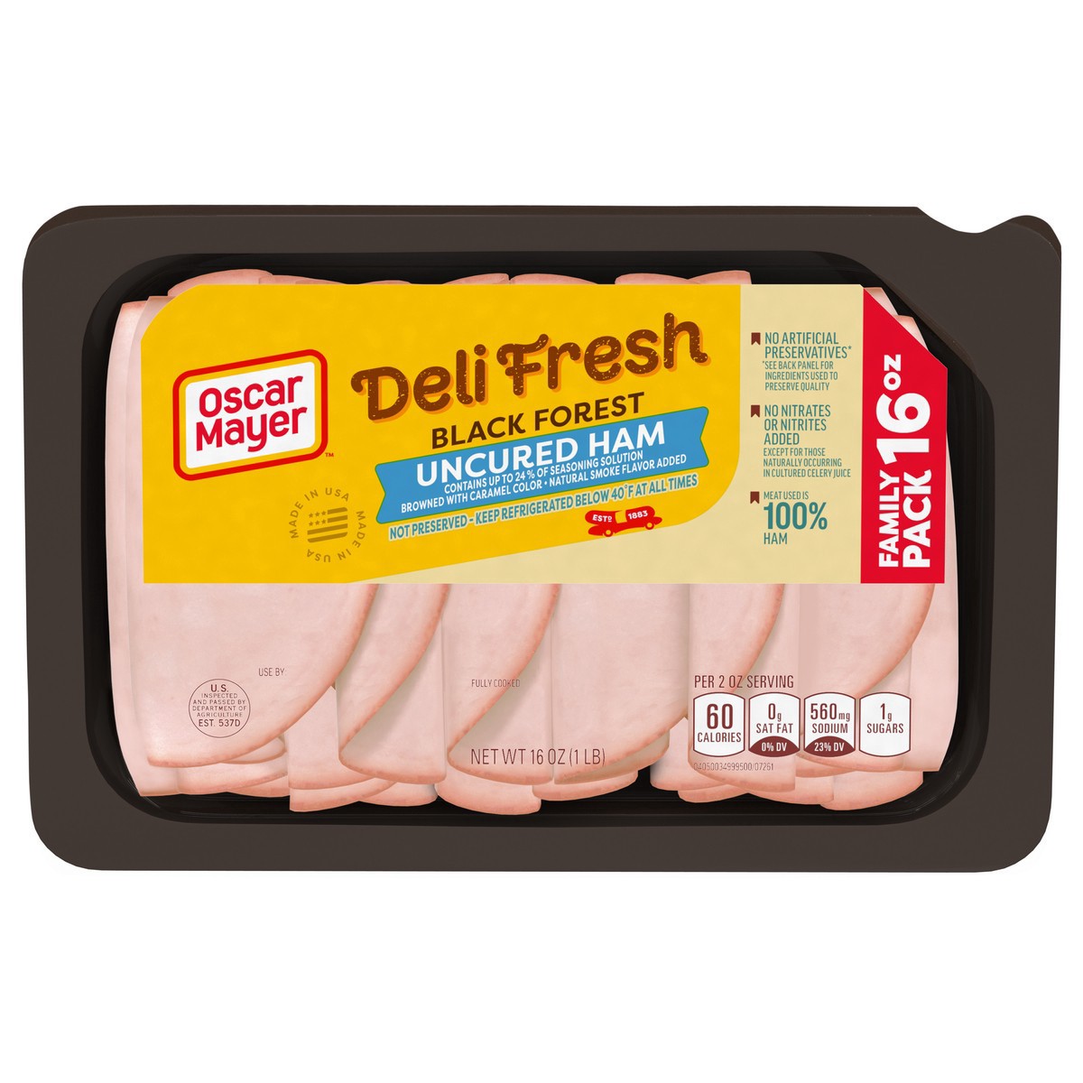 Make a delicious deli sandwich at home with Oscar Mayer Deli Fresh Black Forest Uncured Ham, Contains Up to 22% Of A Seasoning Solution, Natural Smoke Flavor Added, Browned With Caramel Color, Sliced …