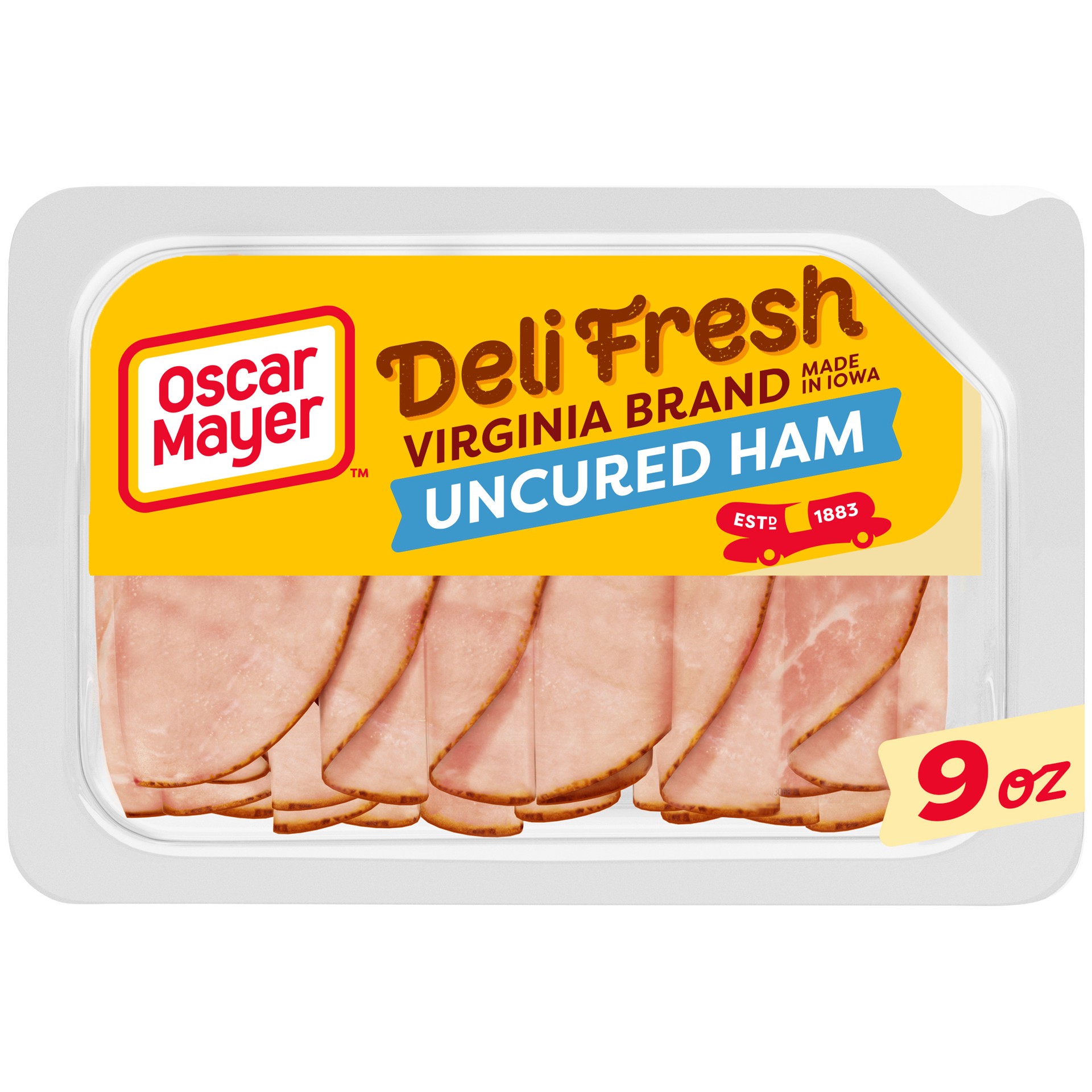 Make a delicious deli sandwich at home with Oscar Mayer Deli Fresh Virginia Brand, Made in Iowa, Uncured Ham, Contains Up to 24% Of Seasoning Solution, Natural Smoked Flavor Added, Browned With Carame…