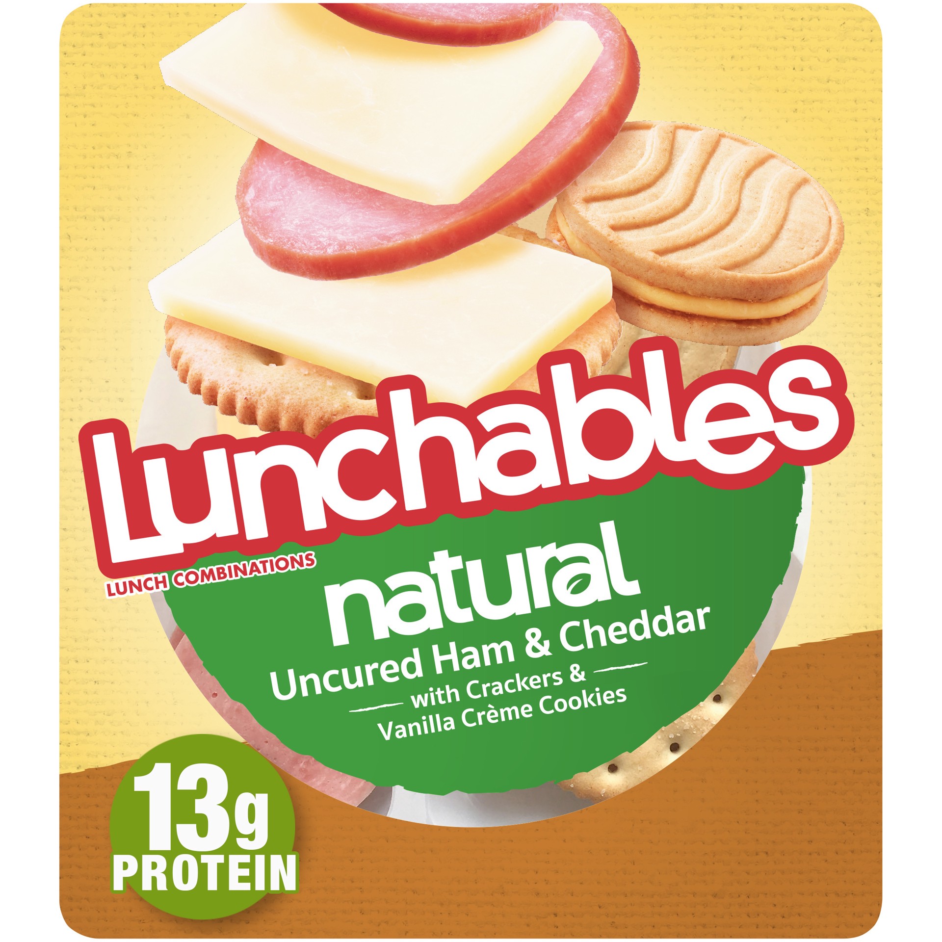 Fun and natural come together with new Lunchables Natural Uncured Ham and Cheddar. Stack crackers high with natural hickory smoked uncured ham and white cheddar cheese, with vanilla crème cookies as a…
