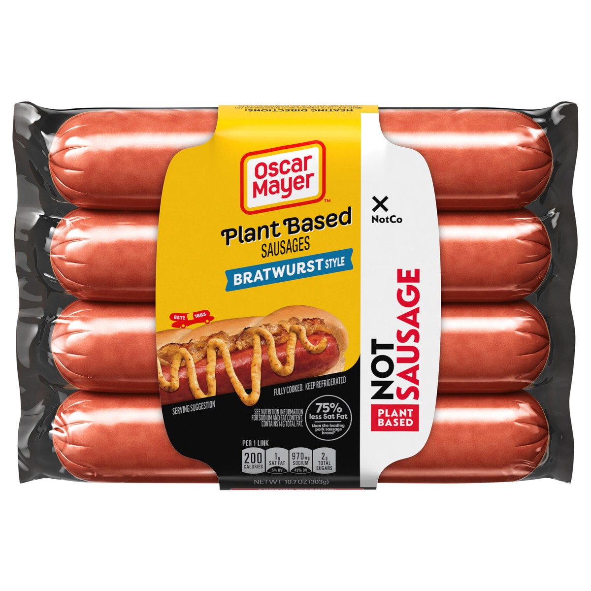 Introducing Oscar Mayer Plant-Based NotSausage, Bratwurst Style, available in a 10.7 oz, 4 count pack. Grill up plant-based goodness with our delicious, mouthwatering Bratwurst Style NotSausage. Try o…